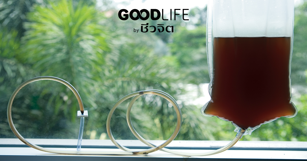 - ปิดวาวส์ที่ปลายสาย แล้วใส่น้ำกาแฟที่อุ่นพอดีลงในถุงดีท็อกซ์ ไล่อากาศออกจากสายยาง โดยเปิดวาวส์ปล่อยให้น้ำกาแฟไหลผ่านสายยางเล็กน้อยแล้วปิดวาวส์