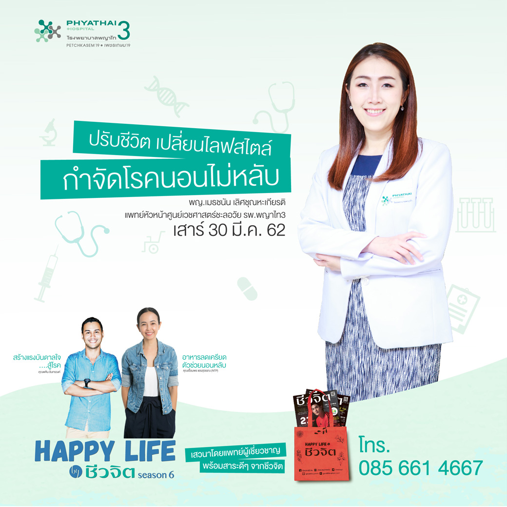 รพ.พญาไท 3 กับหัวข้อ “ปรับชีวจิต เปลี่ยนไลฟ์สไตล์ กำจัดโรคนอนไม่หลับ” วันเสาร์ที่ 30 มีนาคม 2562
