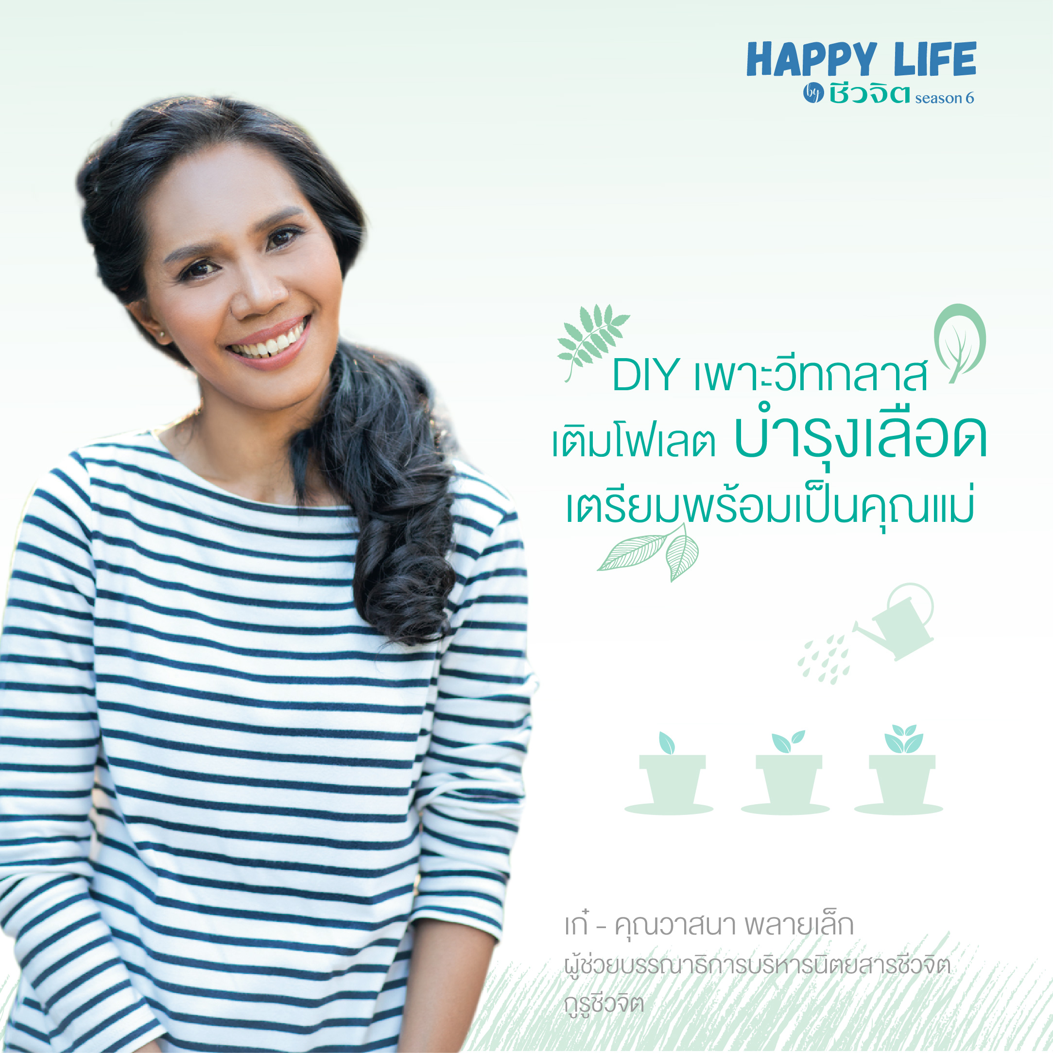 - ช่วงที่ 5 คุณเก๋-วาสนา พลายเล็ก มาสาธิต พร้อมบอกเคล็ดลับ “DIY เพาะวีทกลาส เติมโฟเลต บำรุงเลือด” เตรียมพร้อมเป็นคุณแม่