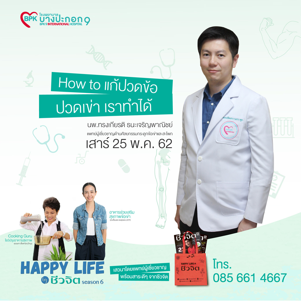 รพ.บางปะกอก9 อินเตอร์เนชั่นแนล ในหัวข้อ “How to แก้ปวดข้อ ปวดเข่า เราทำได้” วันเสาร์ที่ 25 พ.ค. 62