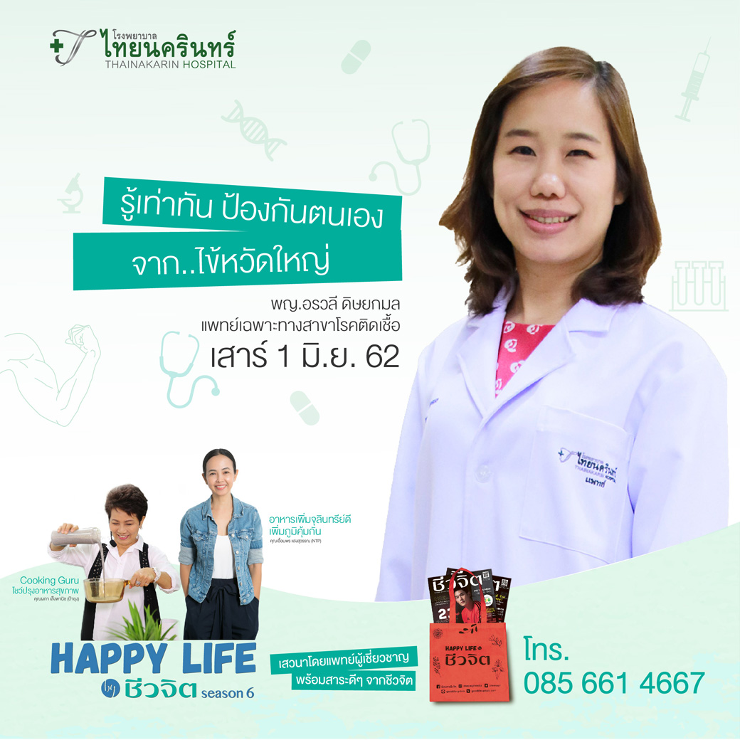 - ช่วงที่ 3 พญ.อรวลี ดิษยะกมล แพทย์เฉพาะทางสาขาโรคติดเชื้อ มาแนะวิธีป้องกันโรคใกล้ตัวในหัวข้อ “รู้เท่าทัน ป้องกันตนเองจากไข้หวัดใหญ่”