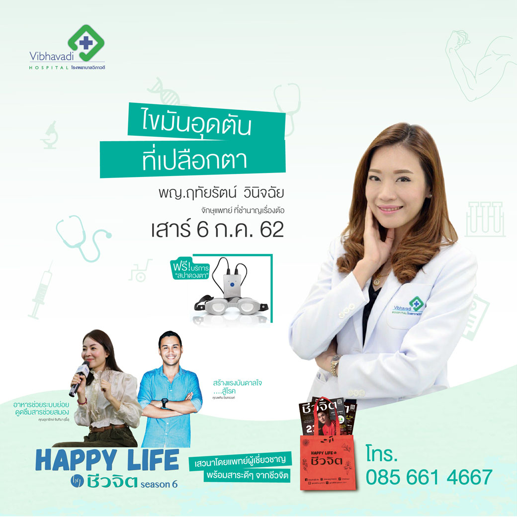 รพ.วิภาวดี ในหัวข้อ “ไขมันอุดตันที่เปลือกตา” วันเสาร์ที่ 6 กรกฎาคม 2562
