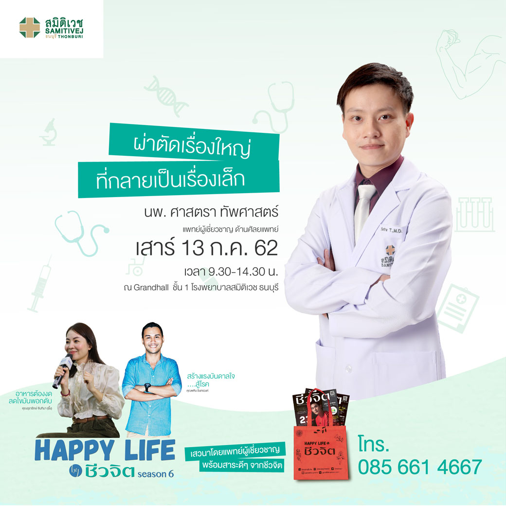 รพ.สมิติเวช ธนบุรี ในหัวข้อ “ผ่าตัดเรื่องใหญ่ ที่กลายเป็นเรื่องเล็ก” วันเสาร์ที่ 13 กรกฎาคม 2562