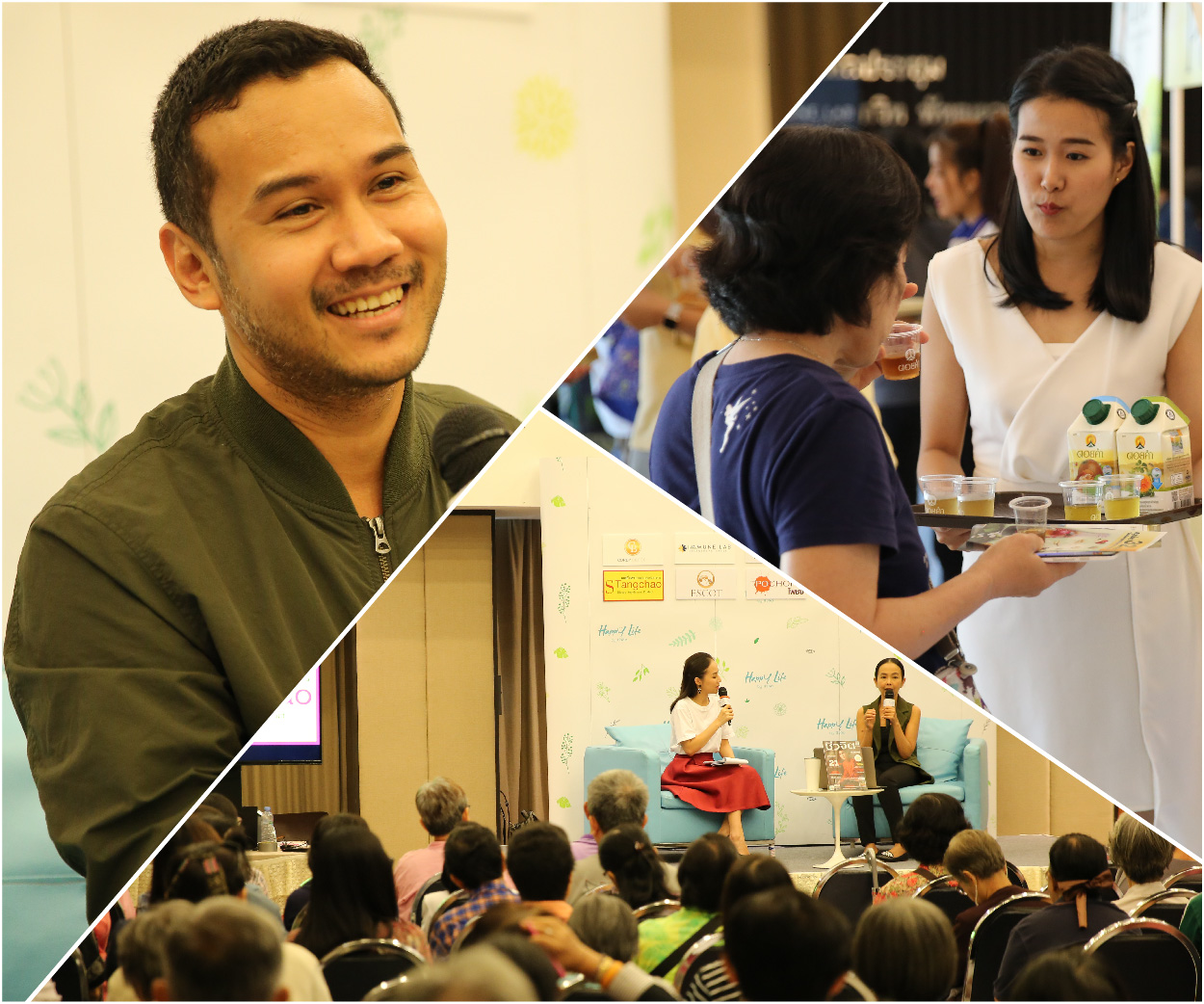 - ดอยคำ นำน้ำผลไม้, น้ำสมุนไพร เตรียมไว้สำหรับผู้ร่วมฟังเสวนา ชิมฟรี!