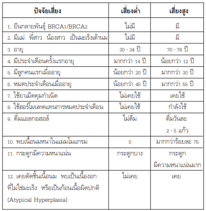 ปัจจัยเสี่ยงโรคมะเร็งเต้านม