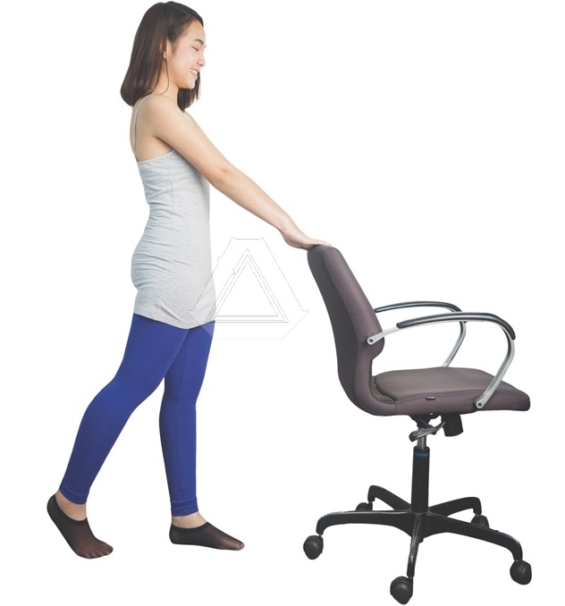 •ยืนห่างจากเก้าอี้หรือโต๊ะ 30-45 เซนติเมตร โดยยืนแยกขาออกจากกัน