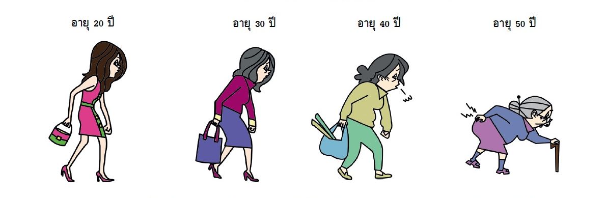 ตัวอย่างจากภาพด้านบนแสดงให้เห็นว่า ท่าทางในชีวิตประจำวันที่ไม่ถูกต้อง สามารถส่งผลต่อสุขภาพหลังของเราได้ในระยะยาว