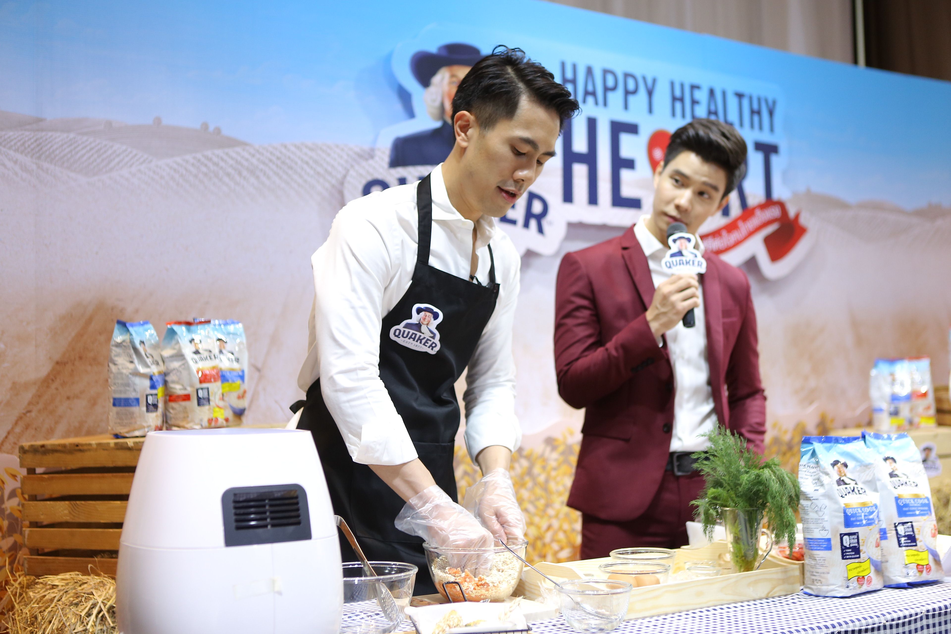 ภายในงาน ยังได้มีการจัดเวิร์คช็อปสาธิตการทำสุขภาพจาก ข้าวโอ๊ต โดย 2 อินฟลูเอนเซอร์สายสุขภาพอย่าง จ๋า – ครอบครัวอย่าง “แพนเค้กข้าวโอ๊ต” รวมถึง “เอเนอจี้บอล” (Oatmeal Energy Ball) ซึ่งกำลังเป็นที่นิยมของสาวๆ ที่รักการออกกำลังกาย ยศสินี ณ นคร กูรูด้านอาหารและการดูแลสุขภาพ เจ้าของเพจ Yossiebistro และ หมอตั้ม – นพ. ดิษกุล ประสิทธิ์เรืองสุข เจ้าของเพจ EAT Matters by หมอตั้ม ซึ่งได้นำ ข้าวโอ๊ต เควกเกอร์มาประยุกต์ใช้เป็นส่วนผสมในหลากหลายเมนูได้อย่างน่าสนใจ อาทิ เมนูอาหารคาวอย่าง “นักเก็ตปลาแซลมอนชุบ ข้าวโอ๊ต ทอด” ที่ทานคู่กับทาทาร์ซอส เมนูอาหารเช้าที่เองทำได้ง่ายๆ อย่าง “โอเวอร์ไนท์ โอ๊ต” (Overnight Oat) เมนูของหวานที่ถูกใจทุกคนใน