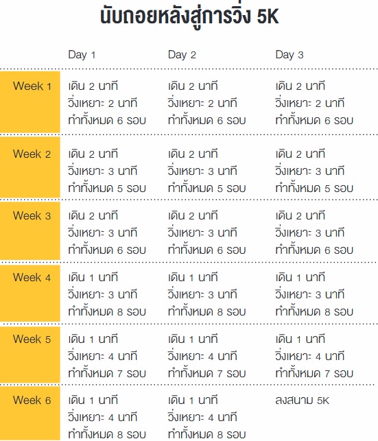 เข้าใจพื้นฐานของการวิ่งและสิ่งจำเป็นกันแล้ว เอาเป็นว่า มาดูโปรแกรมฝึกวิ่ง เพื่อให้คุณสามารถวิ่ง 5 กิโลเมตร ได้อย่างสบายๆ กันเลยดีกว่า