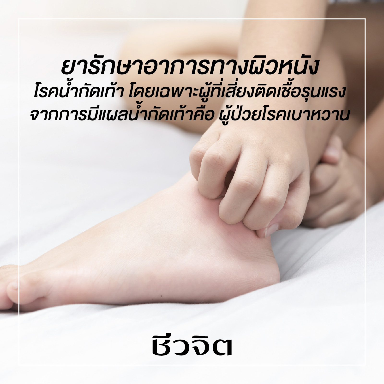 4.ยาใช้รักษาอาการทางผิวหนังได้แก่ โรคน้ํากัดเท้า โดยเฉพาะผู้ที่เสี่ยงติดเชื้อรุนแรงจากการมีแผลน้ํากัดเท้าคือ ผู้ป่วยโรคเบาหวาน
