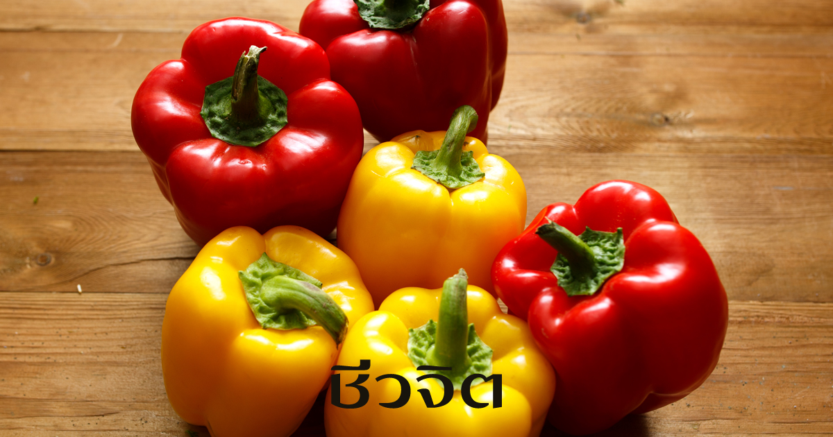 - พริกหยวกขนาดกลางสีแดง เขียว เหลือง สไลด์บางตามแนวยาว