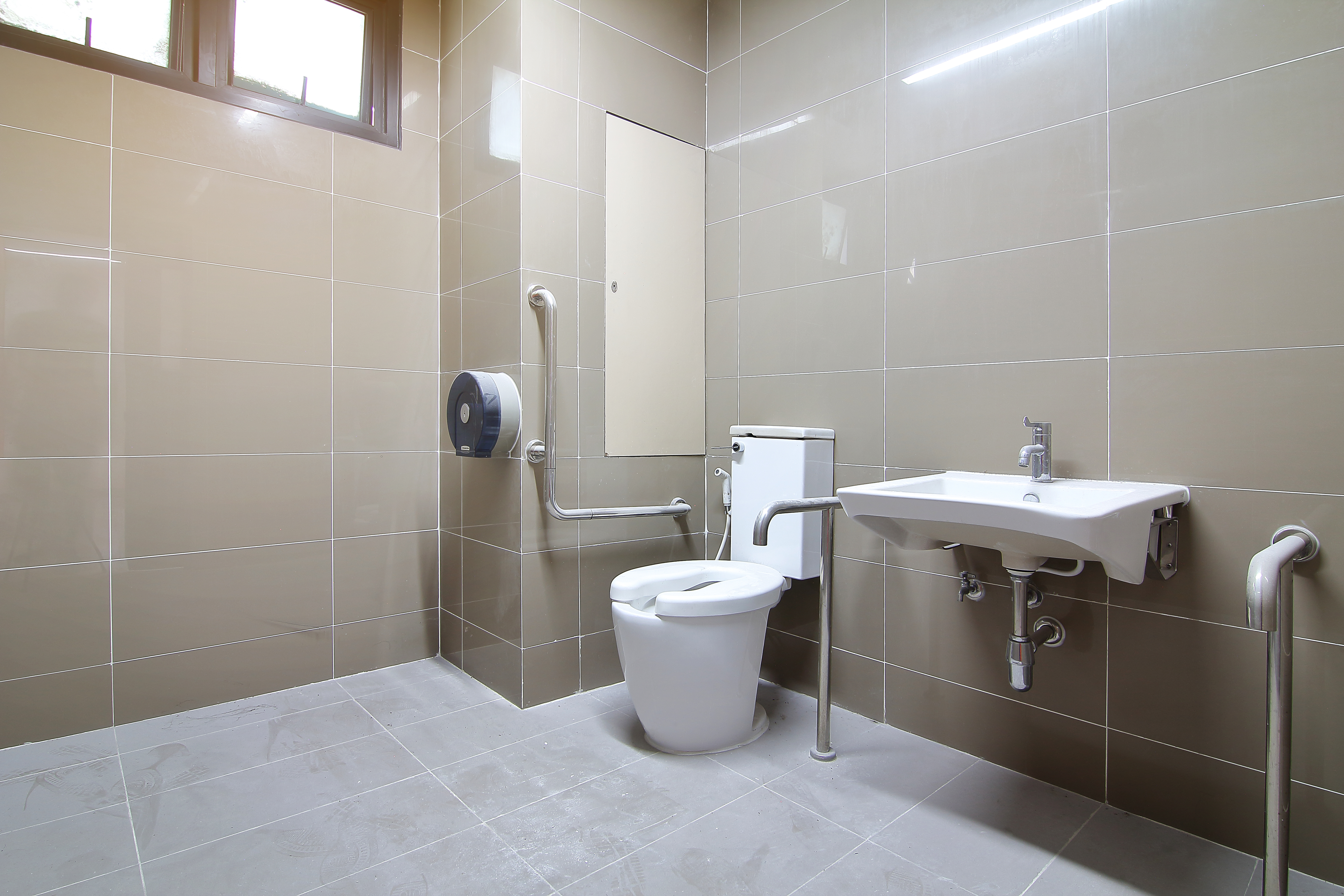 โถสุขภัณฑ์ควรมีความสูงใกล้เคียงกับรถเข็น พร้อมติดตั้งราวจับและเก้าอี้นั่งสำหรับอาบน้ำ นอกจากนี้ สิ่งขาดไม่ได้เลย คือ “สัญญาณฉุกเฉิน” เพื่อให้คนภายนอกสามารถรับรู้ถึงความผิดปกติและเข้ามาช่วยเหลือได้ทันที