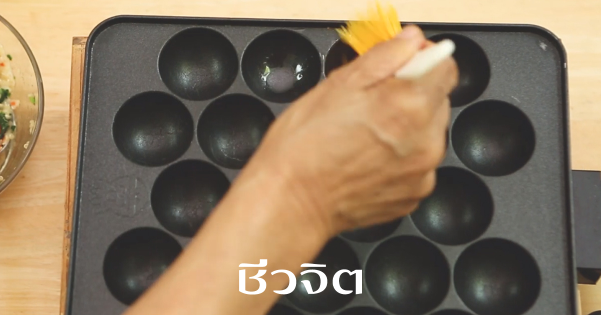 ทาน้ำมันมะกอกบนกระทะขนมครกเล็กน้อย