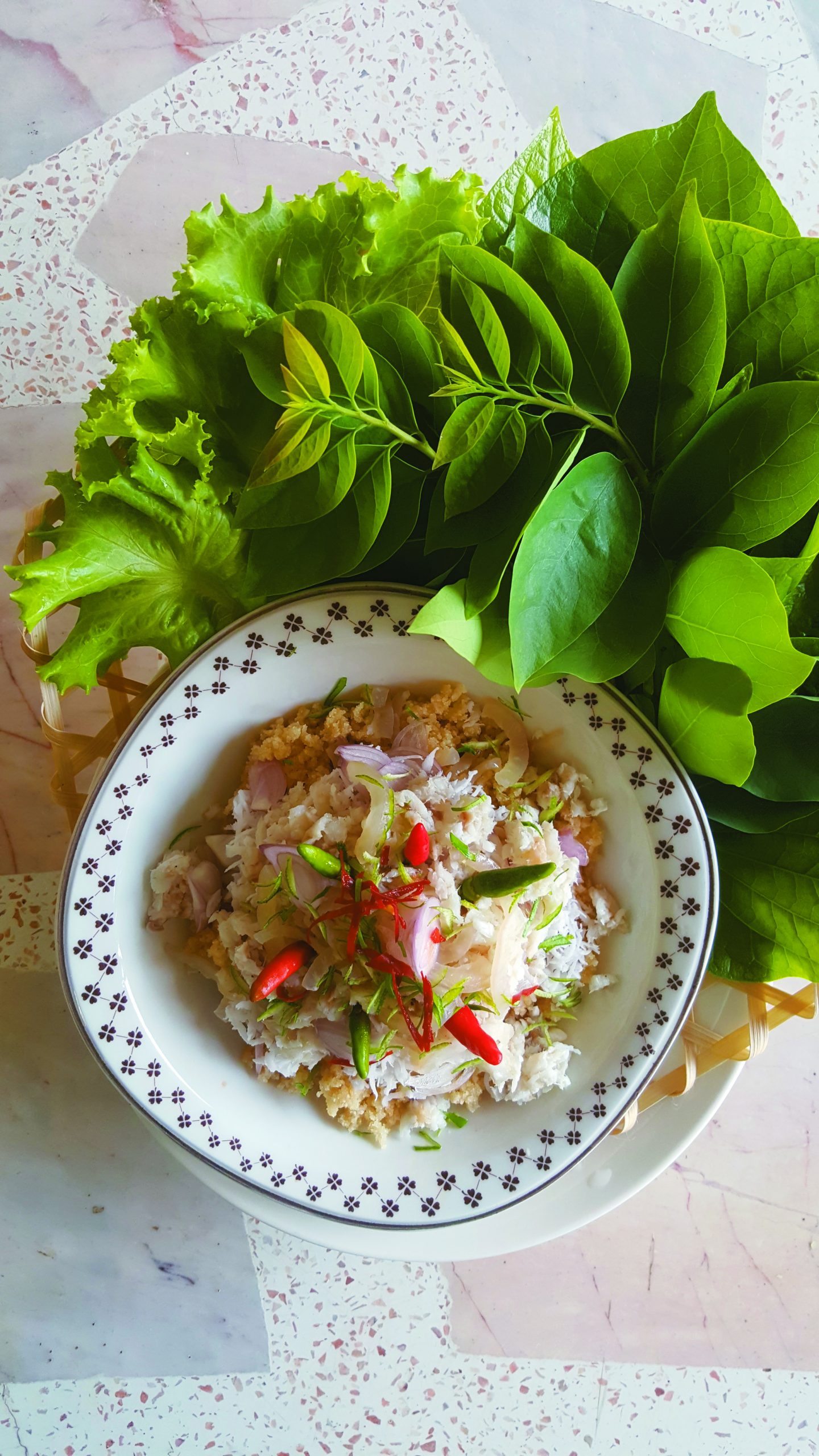 ส่วนความรู้ความเข้าใจเกี่ยวกับสมุนไพรที่ได้เรียนมานั้น คุณเกม อธิบายถึงการนำมาประยุกต์ใช้ว่า ช่วงหน้าร้อนในปีที่ผ่านๆ มาจะเลือกกินบัวบกกันเป็นหลัก ทั้งผักแนมน้ำพริก หรือ คั้นน้ำดื่ม เพราะบัวบกมีฤทธิ์เย็น แต่พอปีนี้มีสถานการณ์โรคโควิดระบาด จึงปรับให้อาหารมีรสชาติเผ็ดร้อนจากสมุนไพรมากขึ้น ตัวอย่างเช่น การทำอาหารที่มีรสเผ็ดร้อนจากพริกไทย ขิง ข่า ตะไคร้ สมุนไพรไทยๆ ของเรา เพื่ออาศัยสารยาจากสมุนไพรต่างๆเหล่านี้มาช่วยเสริมสร้างภูมิคุ้มกัน