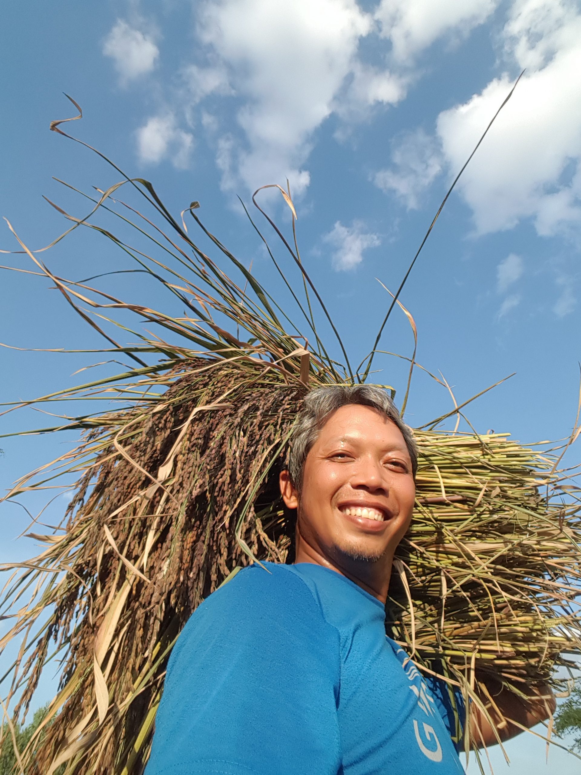 “ปีนี้ เรามีข้าวเหนียวดำกัญญาเก็บไว้กิน ข้าวชนิดนี้เป็นข้าวสีม่วงดำมีสารแอนโทไซยานิน มีประสิทธิภาพในการต้านอนุมูลอิสระสูงกว่าวิตามินซีและอีถึง 2 เท่า ลดอาการอักเสบ ป้องกันมะเร็งหลายชนิด และที่สำคัญยังต้านไวรัสได้อีกด้วย