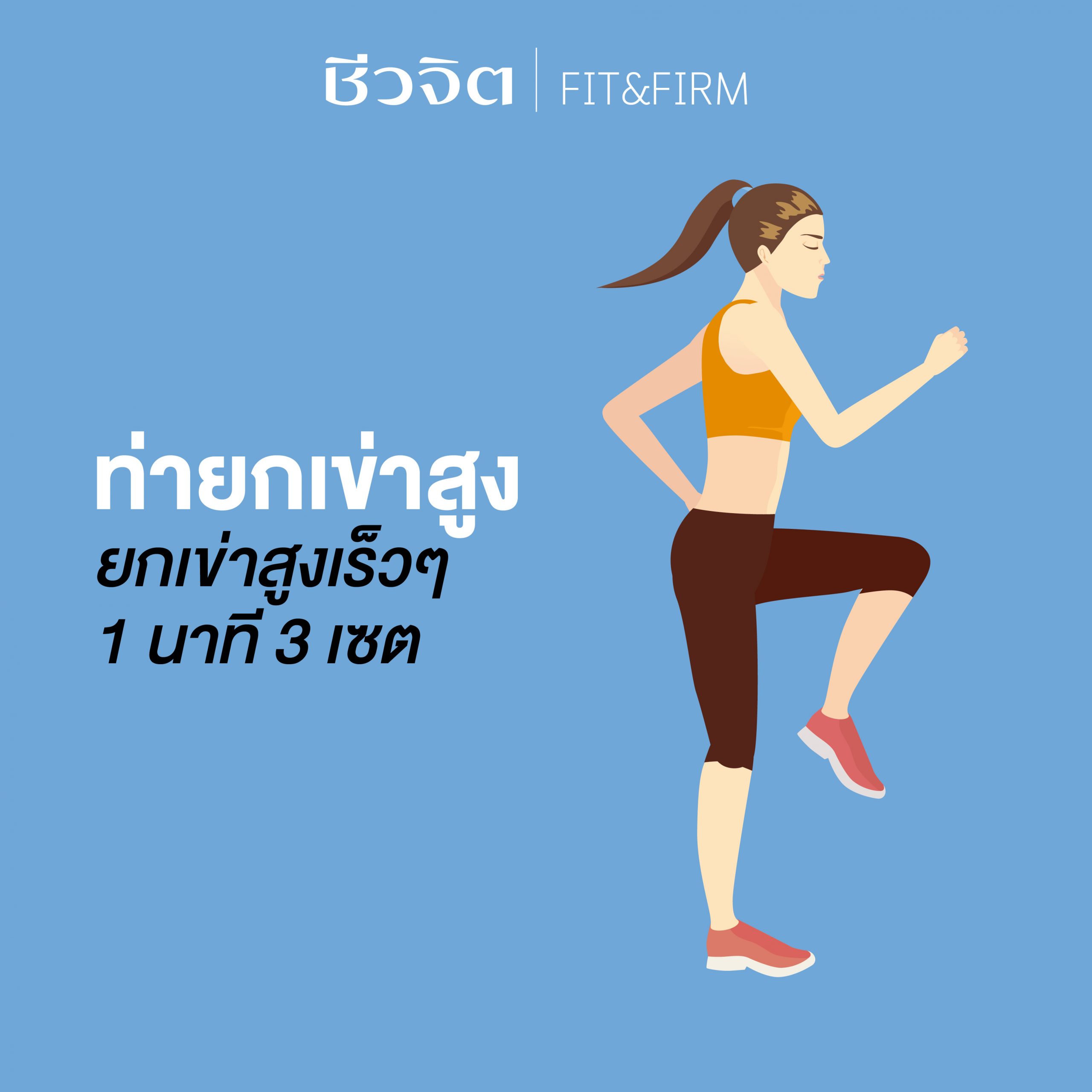 วิธีทำ : ยกเข่าสูงเร็วๆ สลับข้างกัน 1 นาที นับเป็น 1 เซต ทำ 3 เซต