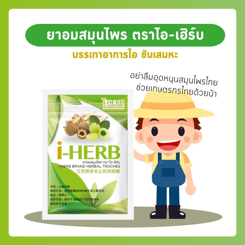 ด้วยนวัตกรรมอันทันสมัยที่สามารถสกัดสารสำคัญออกมาจากสมุนไพรได้ จึงเกิดเป็นยาอมสารสกัดสมุนไพร i-HERB (ไอ-เฮิร์บ) ขึ้น โดยหนึ่งเม็ดประกอบไปด้วย สมอพิเภก สมอไทย มะขามป้อม และรากชะเอมเทศ บรรเทาอาการไอ ขับเสมหะ โดยรับประทานครั้งละ 1 – 2 เม็ด