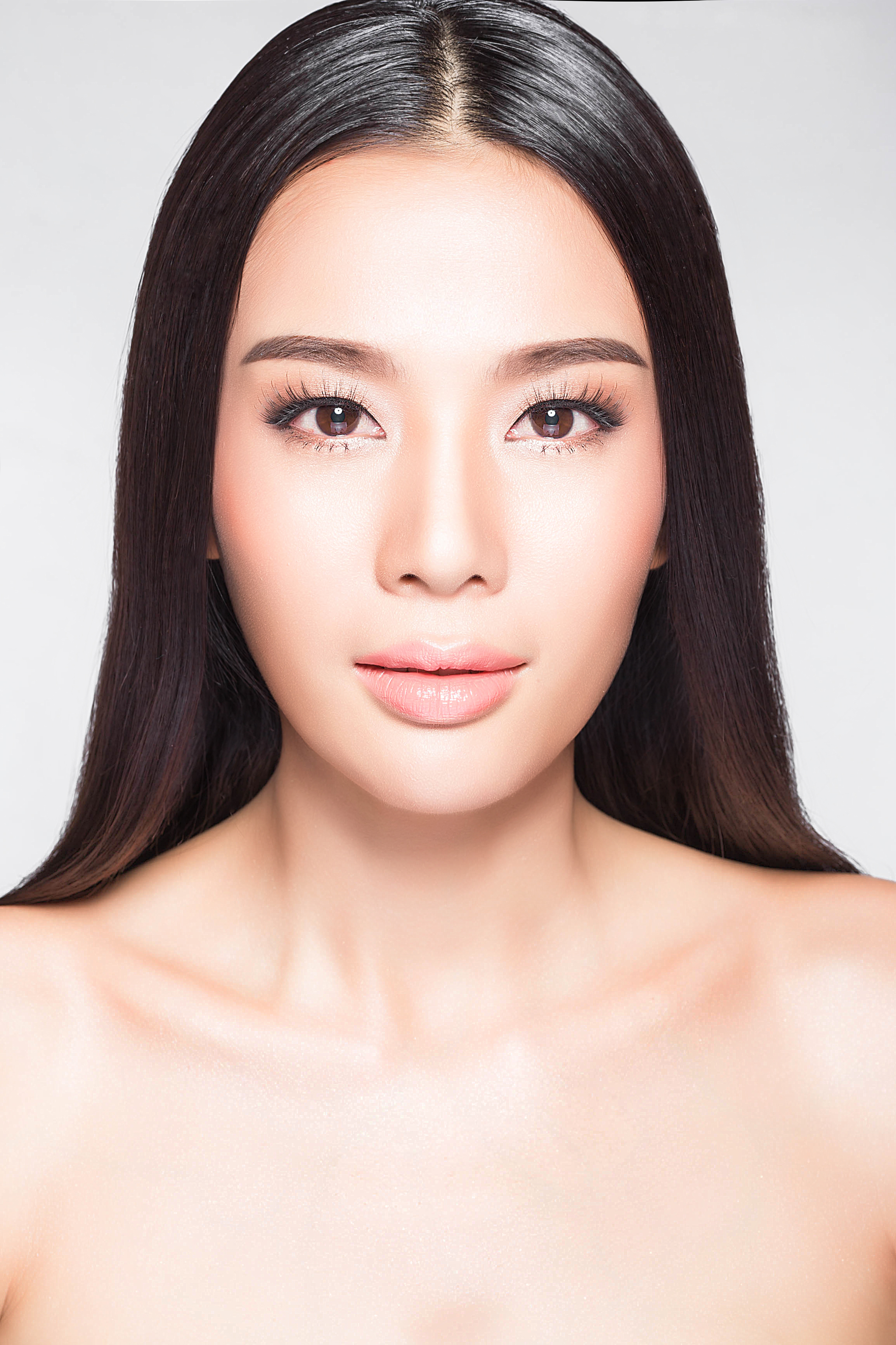 1.เริ่มจากการทาบริเวณหน้าผาก โดยไล่จากบริเวณกึ่งกลางหน้าผากออกไปด้านข้างทั้งสองข้าง 3