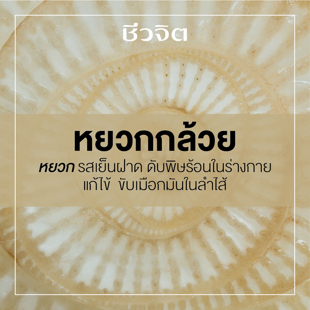 หยวก รสเย็นฝาด ดับพิษร้อนในร่างกาย แก้ไข้ ขับเมือกมันในลำไส้