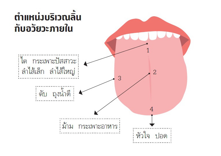 เพราะหนึ่งในวิธีตรวจวินิจฉัยตามศาสตร์แพทย์แผนจีนนั้นต้องอาศัยการดูลิ้น เพราะลิ้นเชื่อมต่อกับอวัยวะภายใน ทั้งชี่เลือด เส้นลมปราณ และสารน้ำ