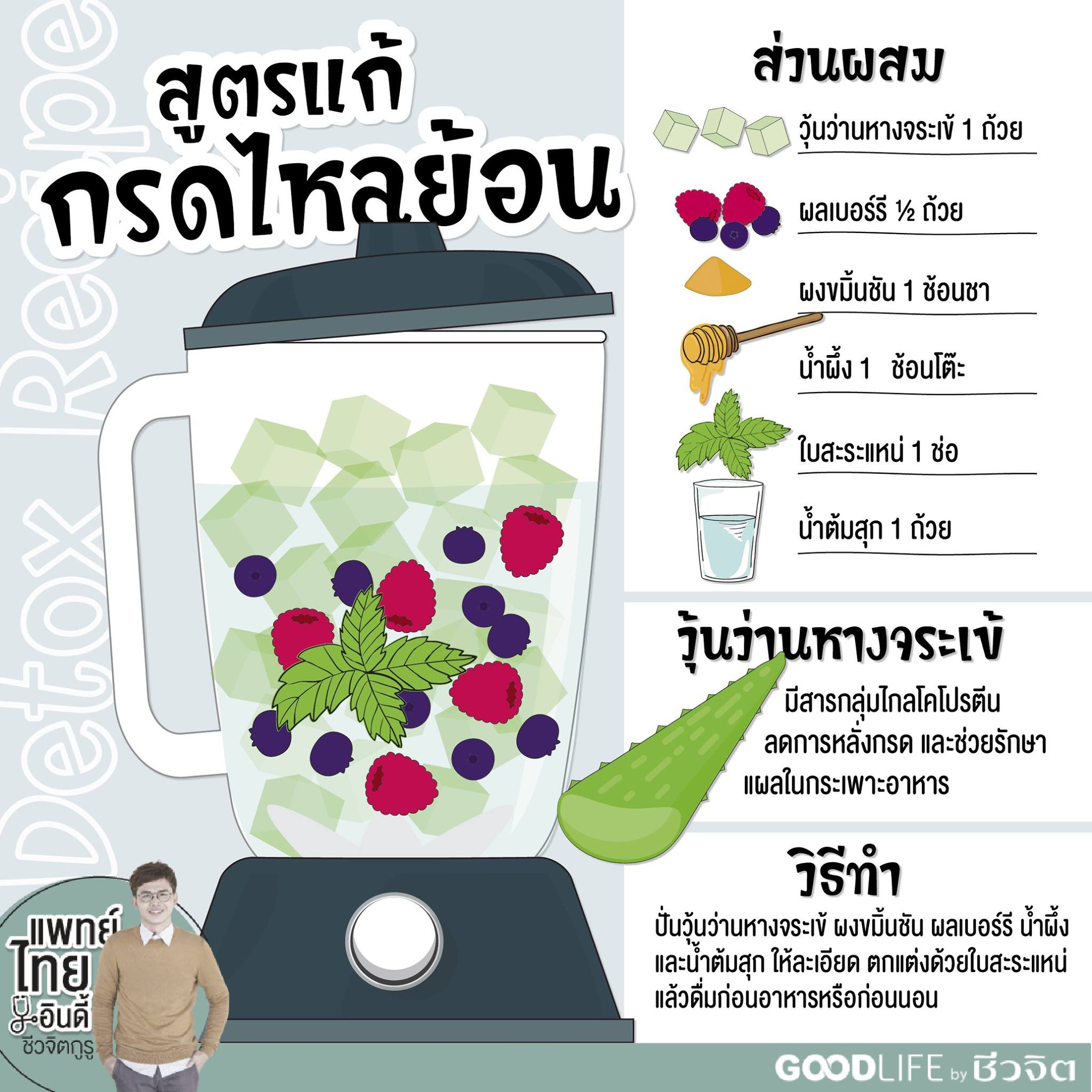ชีวจิตออนไลน์ เราขอแนะนำสูตร Detox Recipe ที่เหมาะกับโรคทางเดินอาหารและระบบย่อยอาหาร โดย พท.ป. ชารีฟ หลีอรัญ ชีวจิตกูรู ซึ่งเรามีมาแนะนำ 3 สูตร ด้วยกันจ้า แก้ 3 โรค คือ แก้กรดไหลย้อน โรคกระเพาะอาหาร และแก้อาการท้องผูก