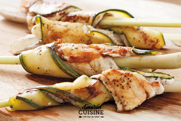 Tip สามารถดัดแปลงม้วนเนื้อปลาหมักกับแท่งตะไคร้ แล้วหั่นซูกินีกับแครอตเป็นชิ้นพอคำ ย่างหรือจี่ให้สุก จัดใส่จาน แล้วราดน้ำซอสก่อนเสิร์ฟก็ได้เช่นกันค่ะ