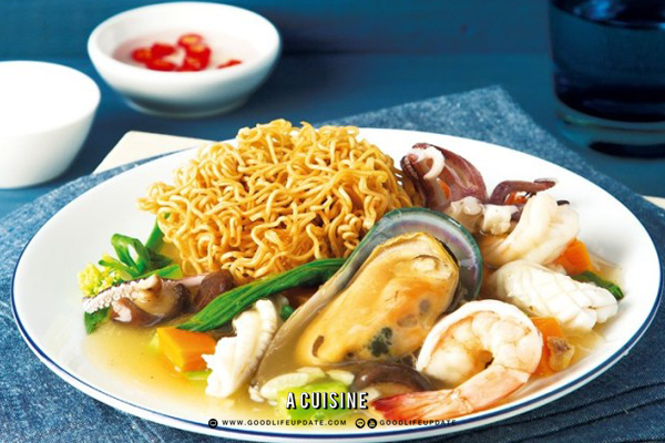 มาทอดจนกรอบ ราดด้วยน้ำราดหน้า ครบเครื่องทะเลทั้งกุ้ง ปลาหมึก และหอยแมลงภู่นิวซีแลนด์ตัวโต ใครได้เห็นเป็นต้องน้ำลายสอ
