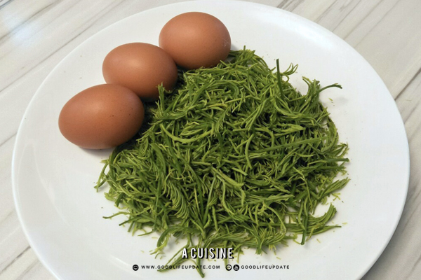 - ไข่ไก่ 3 ฟอง ตีเข้ากับชะอม / ไข่ไก่ 3 ฟอง ตีให้เข้ากัน