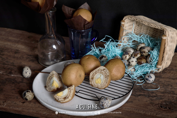 - นำไข่นกกระทาที่ต้มแล้ว แกะเปลือก เสียบไม้ ไม้ละ 1 ฟอง ทำจนครบทั้งหมด