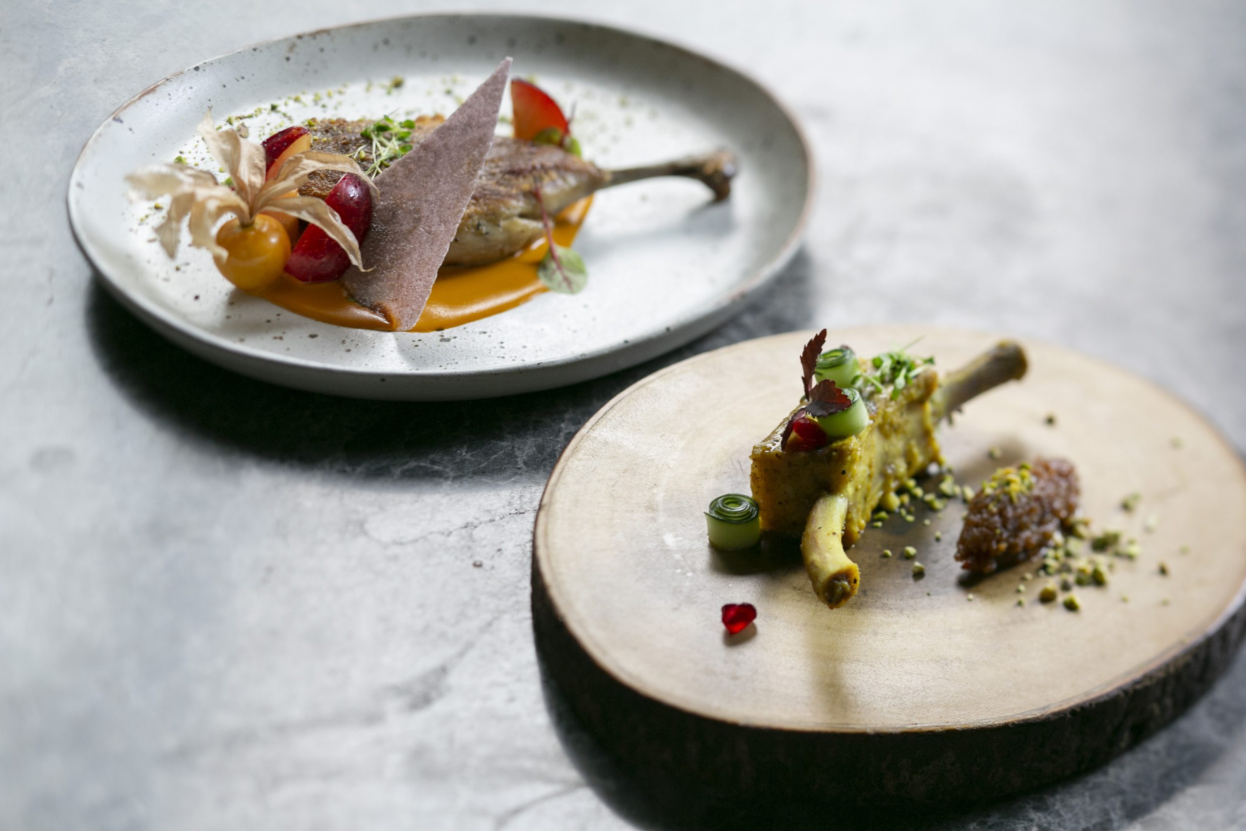 ตัวนี้นะครับเค้าเรียกว่าการทำ SKIN ให้มันกรอบCONFIT ที่ถูกต้องก็คือว่า เนื้อนุ่ม จนแทบจะเอามือบิดกระดูกออกมาได้เลย เวลาตัดผ่านชั้นหนังที่กรอบ ๆ ลงไป แล้วแค่วางมีดไว้เบา ๆ มันจะไหลมาถึงก้นจานเลย อย่างที่บอกนะครับการทำCONFIT คือมันไม่มี TRANTS FAT อยู่แล้วอ่ะ เพราะฉะนั้นอ่ะ จานนี้ แอบสุขภาพเบา ๆ นะครับ