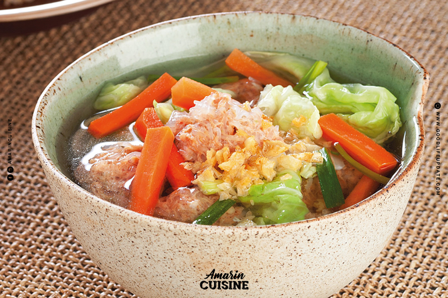 - ตั้งน้ำซุปให้เดือด ใส่ส่วนผสมในข้อแรกลงต้มจนสุก ตามด้วยแครอต และผักกาดขาว ปรุงรสด้วยซีอิ๊วขาว โรยต้นหอมหั่นท่อน ยกลงจากเตา ตักเสิร์ฟ โรยหน้าด้วยกระเทียมเจียว เป็นอันเสร็จเรียบร้อยค่ะ