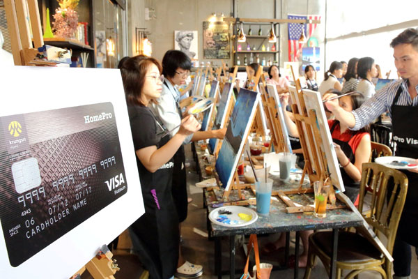 สนุกกับไอเดียแต่งบ้านสุดเก๋ด้วยภาพวาดสีอะครีลิค DIY ทำง่ายๆ ด้วยตัวคุณเอง  สำหรับคนที่รักการแต่งบ้านแล้ว อะไรจะดีไปกว่าการมีของประดับตกแต่งที่ไม่เหมือนใคร เพื่อเอาใจคนรักการตกแต่งบ้าน บัตรเครดิต โฮมโปร วีซ่า แพลทินัม โดย บริษัท บัตรกรุงศรี อยุธยา จำกัด จึงจัดเวิร์กช้อป “บ้านสวยมีกิมมิค ผนังชิคด้วยกรอบรูป DIY กับบัตรเครดิต โฮมโปร วีซ่า แพลทินัม” ชวนสมาชิกบัตรสนุกกับไอเดียแต่งบ้านสุดชิค กับกิจกรรมวาดภาพสี อะครีลิคกับวิทยากรมากประสบการณ์ ณ ร้านเพ้นท์บาร์ แบงค็อก อาร์ตบาร์สุดฮิปในซอยสุขุมวิท 49
