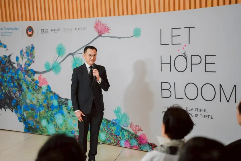 และเมื่อวันที่ 9 พฤศจิกายน 2568 ที่ผ่านมา ศ. นพ.อภิชาติ อัศวมงคลกุล คณบดีคณะแพทยศาสตร์ศิริราชพยาบาล ม.มหิดล เป็นประธานในพิธีเปิดนิทรรศการศิลปะเชิงการแพทย์ “Let Hope Bloom : ปล่อยความหวังให้เบ่งบาน” อย่างเป็นทางการ ภายในงานได้รับเกียรติจากแขกผู้มีเกียรติร่วมงานอย่างคับคั่ง อาทิ คุณกอบกาญจน์ วัฒนวรางกูร ประธานกรรมการมูลนิธิหอศิลปวัฒนธรรมแห่งกรุงเทพมหานคร คุณสุจินตนา จรรยาทิพย์สกุล ประธานมูลนิธิเก้ายั่งยืน คุณลาวัลย์ กันชาติ ประธานบริษัท เจ เอส แอล โกลบอล มีเดีย จำกัด พร้อมด้วยผู้บริหารคณะแพทยศาสตร์ศิริราชพยาบาล ศิลปินและนักแสดง เข้าร่วมในบรรยากาศอบอุ่นและเปี่ยมด้วยพลังแห่งความหวัง