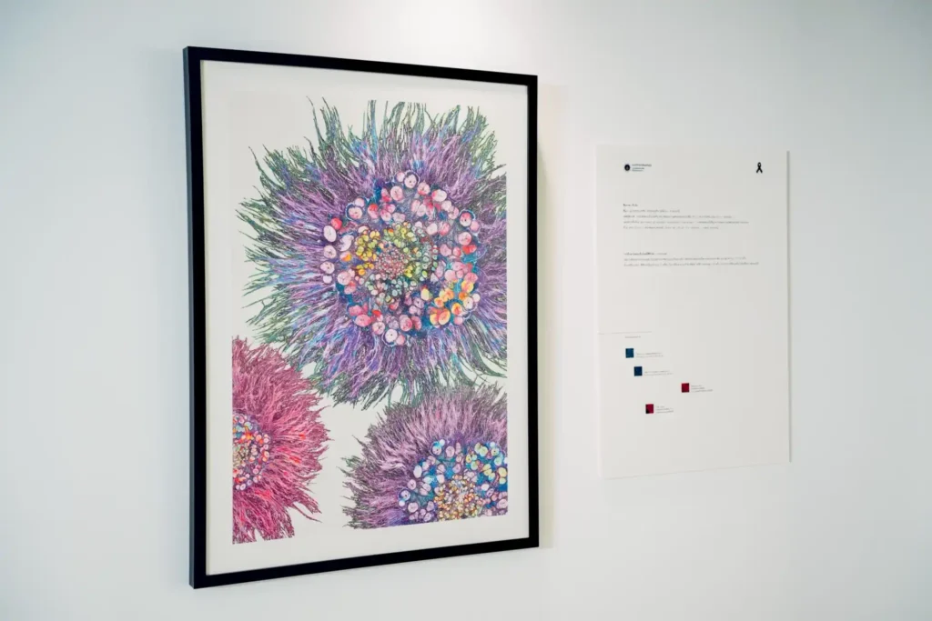 นิทรรศการ “Let Hope Bloom : ปล่อยความหวังให้เบ่งบาน” เป็นการผสานศาสตร์ทางการแพทย์เข้ากับศิลปะ ถ่ายทอดผ่าน “ภาพเซลล์มะเร็ง” ซึ่งเคยเป็นสัญลักษณ์ของความเจ็บปวดและความเปราะบางของชีวิต ให้กลายเป็นผลงานศิลปะที่งดงามราวดอกไม้บาน สื่อถึงการก้าวข้ามความทุกข์ และการต่อสู้ด้วย “ความหวัง” ที่ยังคงมั่นคงในทุกลมหายใจ