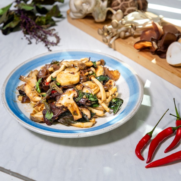ผัดกะเพราเห็ดรวม สูตรเด็ดจากครัวชีวจิต