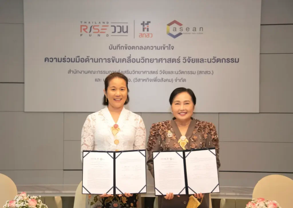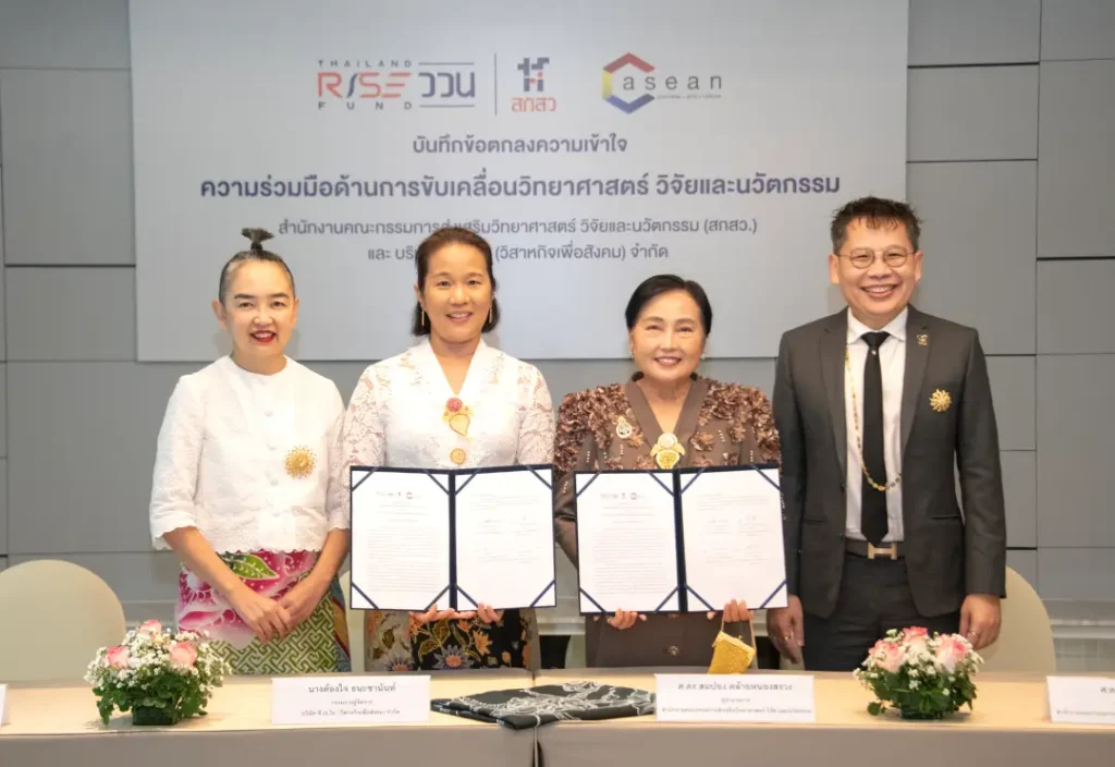 วันที่ 24 เมษายน 2569 สกสว. ได้ลงนามบันทึกข้อตกลงความเข้าใจ (MOU) ร่วมกับ บริษัท ซี.เอ.ไอ. (วิสาหกิจเพื่อสังคม) จำกัด (C asean) ว่าด้วยความร่วมมือด้านการขับเคลื่อนวิทยาศาสตร์ วิจัยและนวัตกรรม ณ สำนักงาน C asean อาคารไทยเบฟ ควอเตอร์ กรุงเทพมหานคร เพื่อขยายบทบาทของกองทุน ววน. จากการสนับสนุนงานวิจัย ไปสู่การ “แปลงองค์ความรู้เป็นมูลค่าทางเศรษฐกิจ” ผ่านความร่วมมือกับภาคเอกชนที่มีศักยภาพระดับสากล