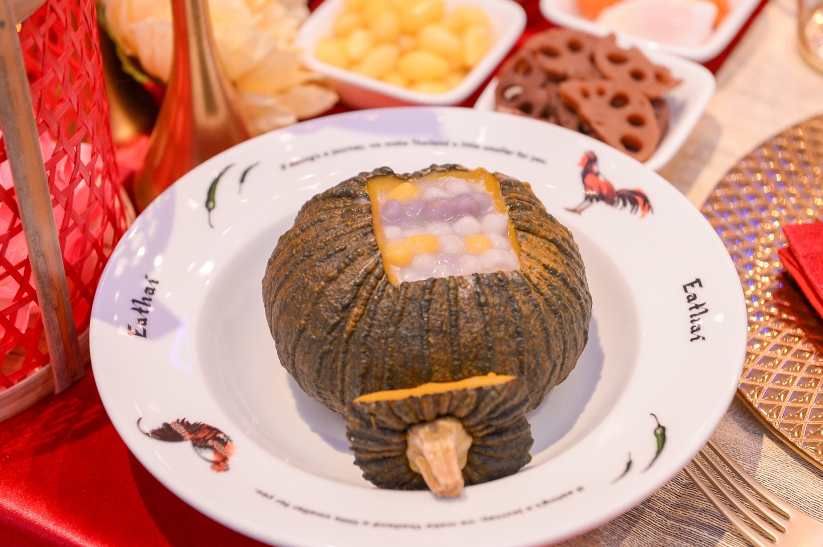 ♥ เสิร์ฟเมนูสุดพิเศษด้วย “ชุดมั่งมีศรีสุข” ประกอบด้วย บัวลอยกระทิสดในลูกฟักทองมงคล และ ไข่คู่ทรงเครื่องรสชาติหวานมัน เข้ากันดี ความพิเศษอยู่ที่กะทิสดผ่านความร้อนน้อย ทำให้เหลือแต่ไขมันดี ลดเรื่องของไขมันอุดตันอีกด้วย และร้านอื่นๆ อีกมากมาย