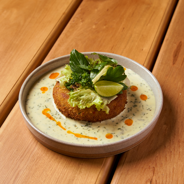 ปิดท้ายด้วย ทอดมันปู เมนูกินเล่นที่แอบสร้างเซอร์ไพรส์ในทุกคำ เพราะด้านในอัดแน่นไปด้วยเนื้อปูจริงเต็มคำ เสิร์ฟคู่ซอสชีฟัดมาโยรสเปรี้ยวนิดหวานนัวกำลังดีด้านบนแต่งด้วยผักกาดหิ่นเพิ่มความหอมและรสเผ็ดอ่อนๆ ให้จานนี้ทั้งอร่อยและมีเอกลักษณ์